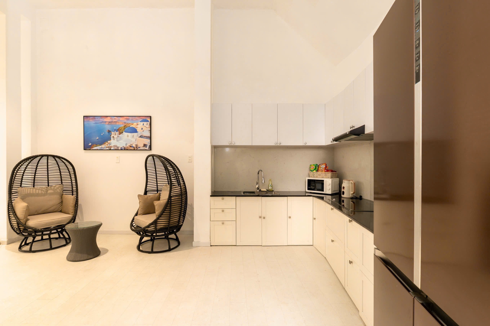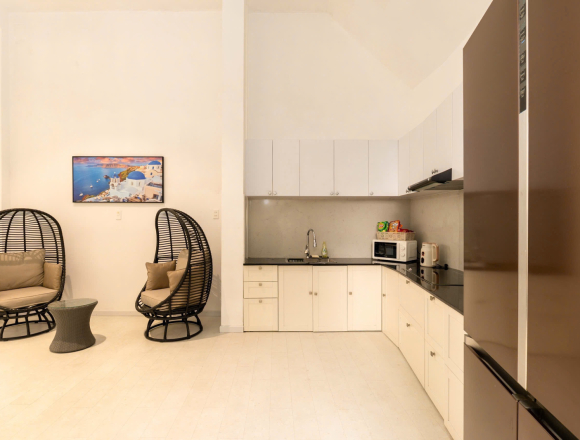 Tiện nghi chuẩn Resort: Phòng khách sang trọng, bếp đầy đủ trang thiết bị hiện đại để bạn tự do trổ tài nấu nướng như đang ở chính ngôi nhà của mình.