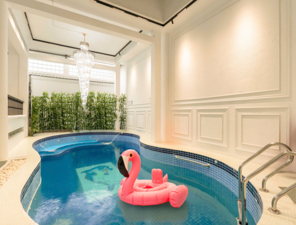 Hồ bơi riêng & Tiệc BBQ ngoài trời: Hồ bơi xanh mát kết hợp cùng khoảng sân vườn rộng rãi, sẵn sàng cho những bữa tiệc Pool Party sôi động hay tiệc nướng BBQ ấm cúng, lung linh về đêm.