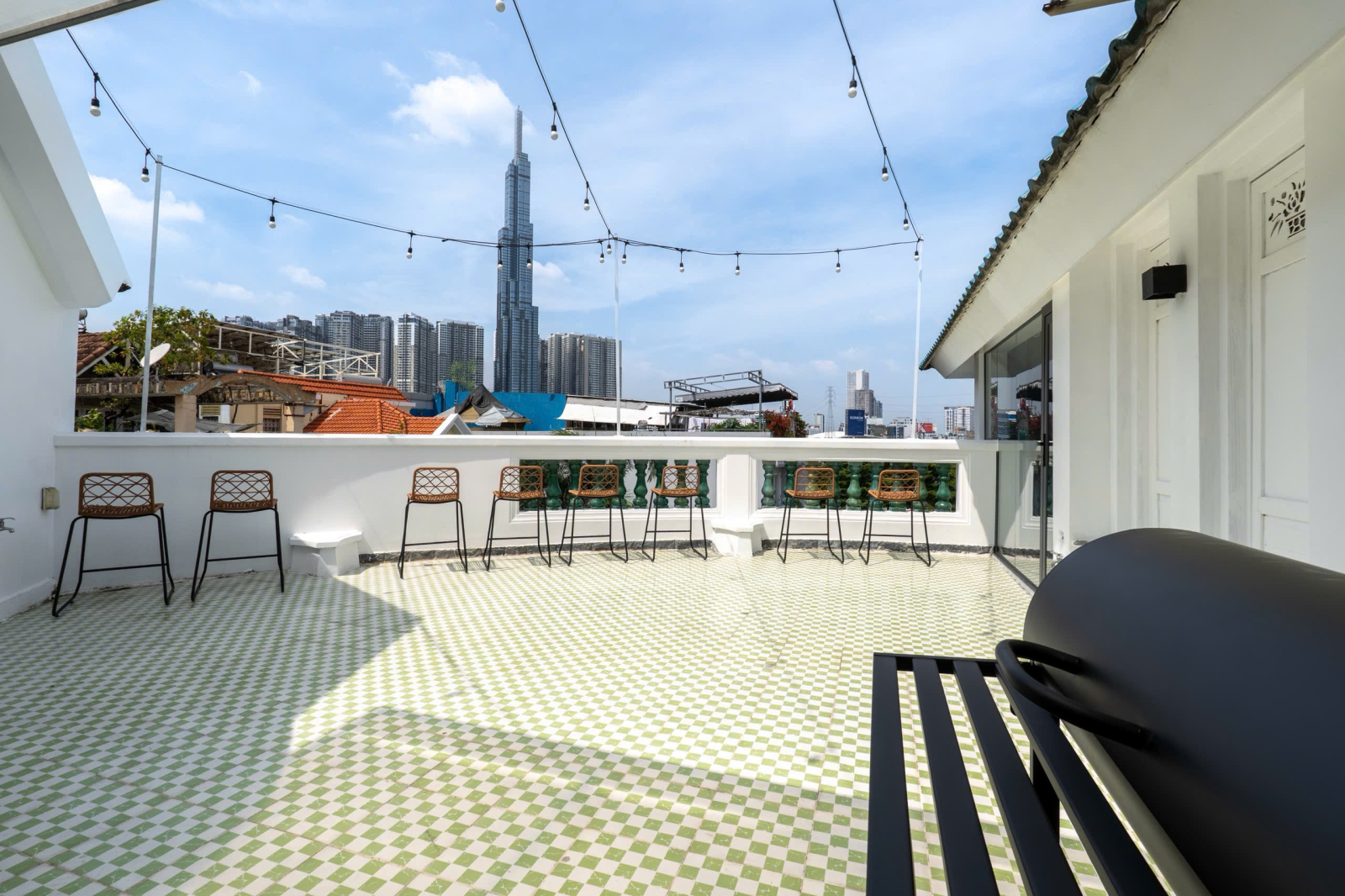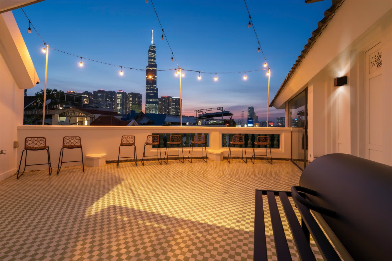 Hồ bơi riêng & Tiệc BBQ ngoài trời: Hồ bơi xanh mát kết hợp cùng khoảng sân vườn rộng rãi, sẵn sàng cho những bữa tiệc Pool Party sôi động hay tiệc nướng BBQ ấm cúng, lung linh về đêm.